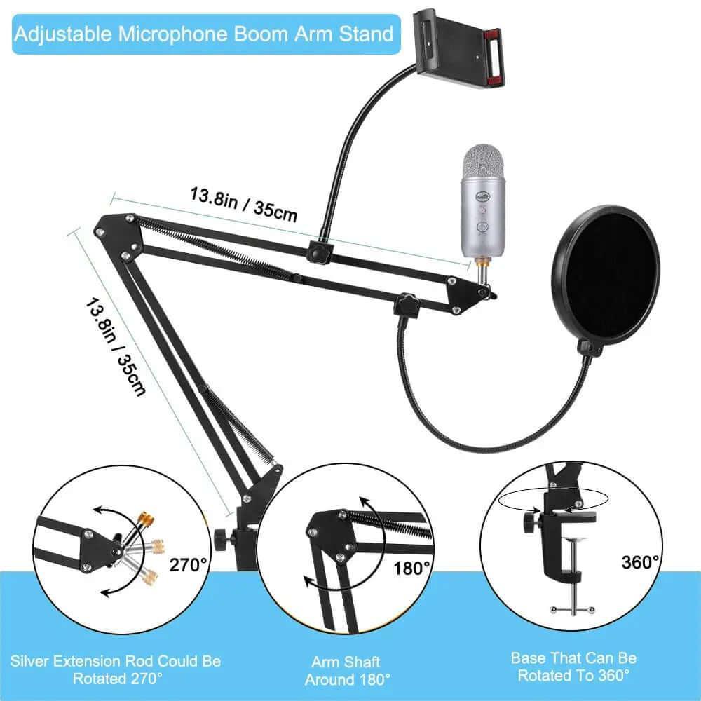 Microphone Stand Upgraded Microphone Boom Arm With Pop Filter For Blue Yeti Pantograph For Mic Bracket With Shock Mount